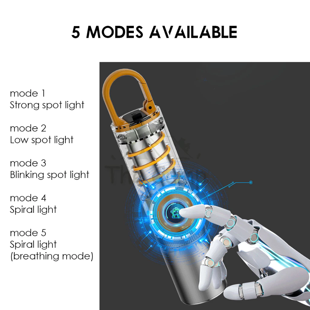 🔥 ৫টি আলোর মোড – হাই ব্রাইট, লো ব্রাইট, ব্লিঙ্কিং, ফিলামেন্ট LED ও ব্রিদিং মোড